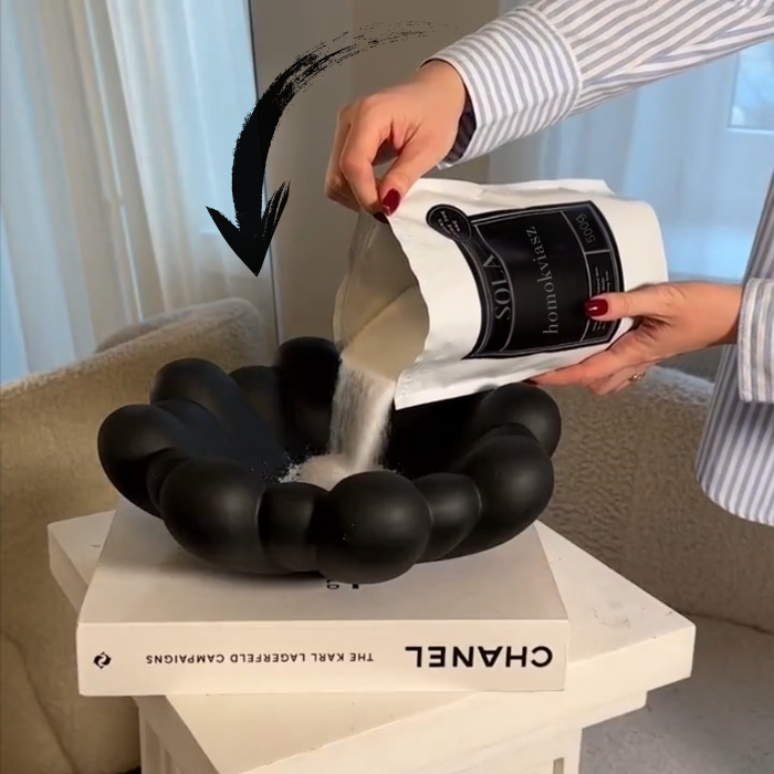 Miután beöntötted a homokviaszt a tálba, finoman rázd meg vagy ütögesd meg az edény oldalát, hogy a viaszszemcsék egyenletesen elterüljenek.
