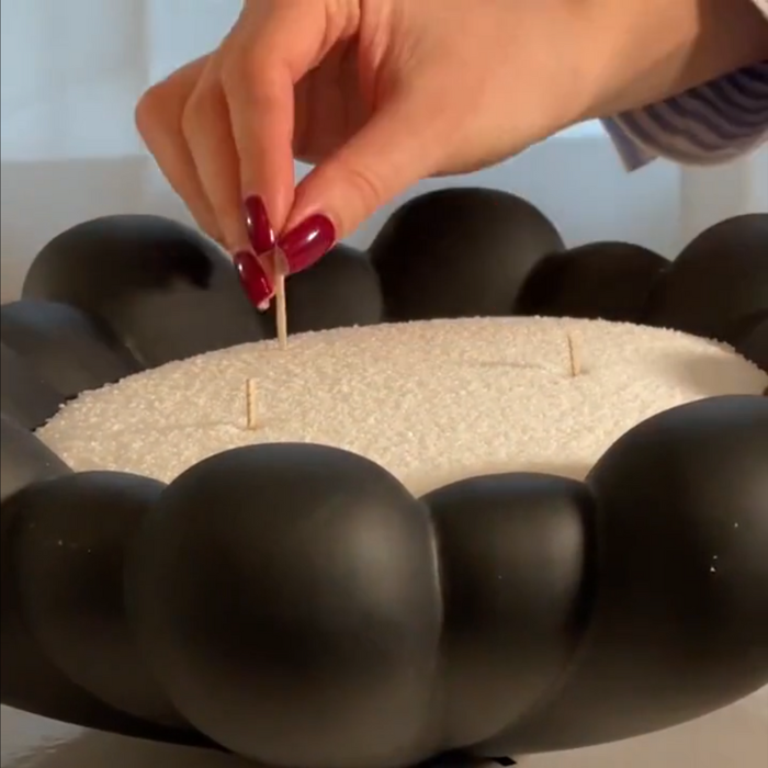 Szúrj bele 1 vagy több kanócot a homokviaszba úgy, hogy kb. 1 cm kilógjon a felszín fölé. Több kanóc esetén ügyelj arra, hogy legalább 5 cm legyen közöttük.